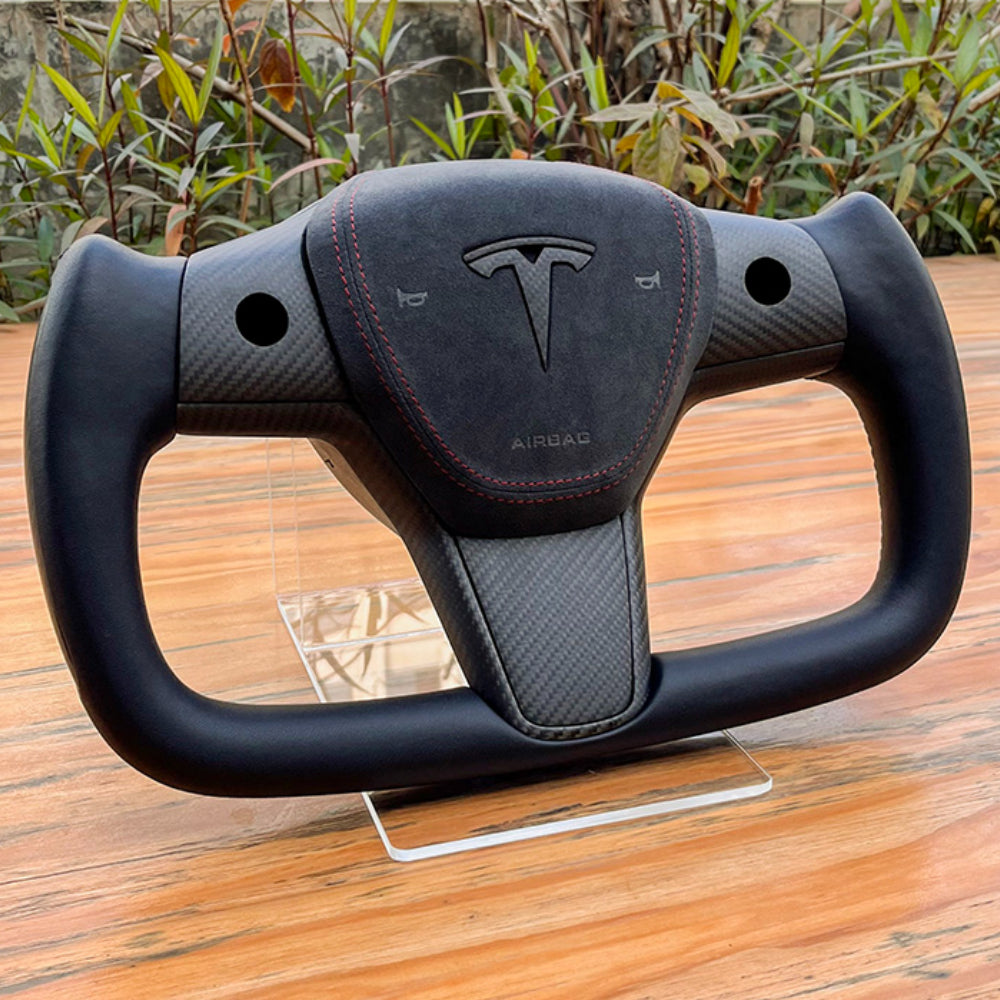 Volant fait sur commande de fibre de carbone de style de joug pour le modèle 3/ Y de Tesla
