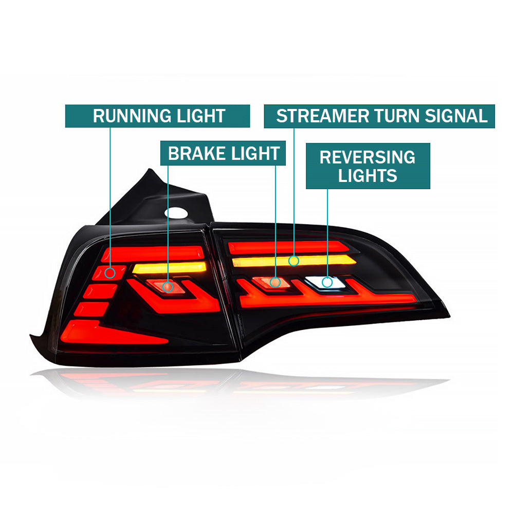 Full LED Tail lights upgrade to replace the original car lights, brighter and safer, the best choice for Tesla exterior upgrade. Approved by the SAE, meet and exceed DOT regulations and comply with FMVSS 108, and are street legal, which can pass the annual inspection.