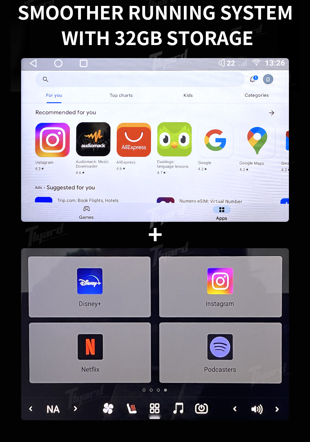 Upgrade your Tesla with the newest upgraded rear display with faster and smoother system operation speed, and built-in installed Disney+ & Netflix.