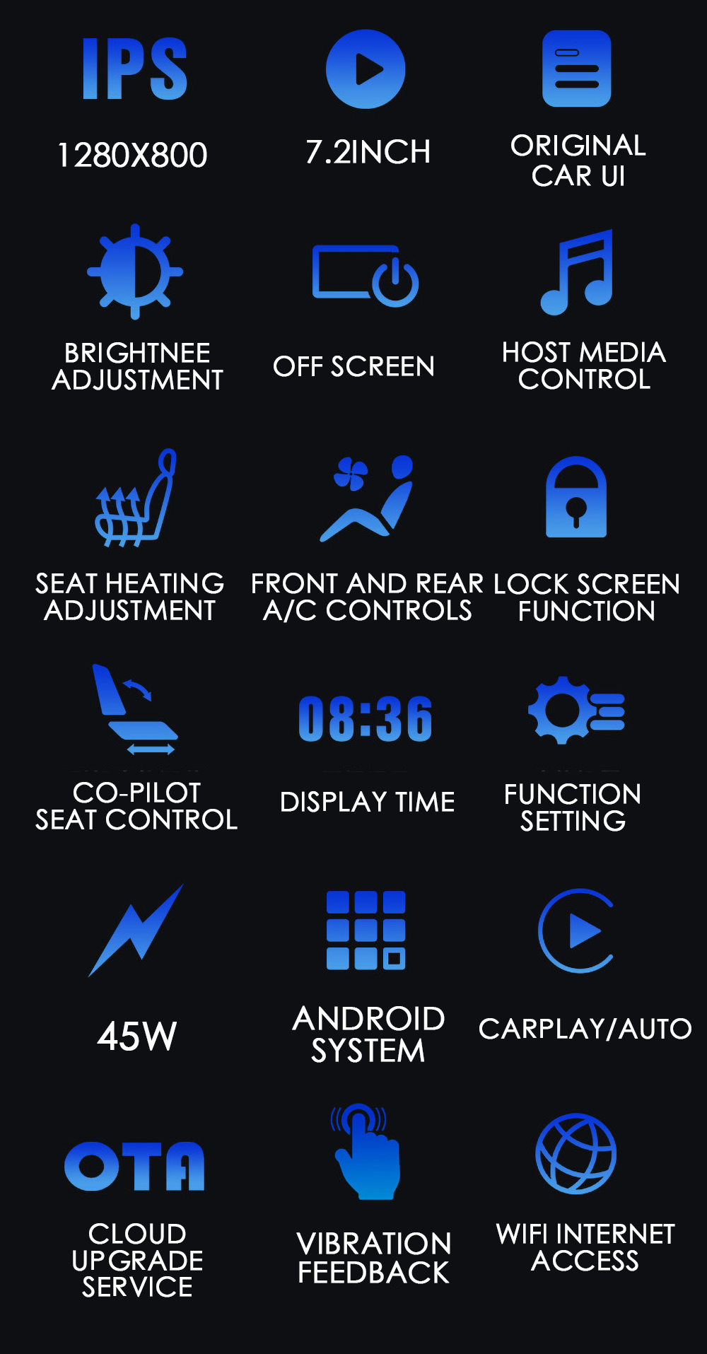 - Apple Car Play & Android Auto: Support wireless Apple Car Play & Android Auto.