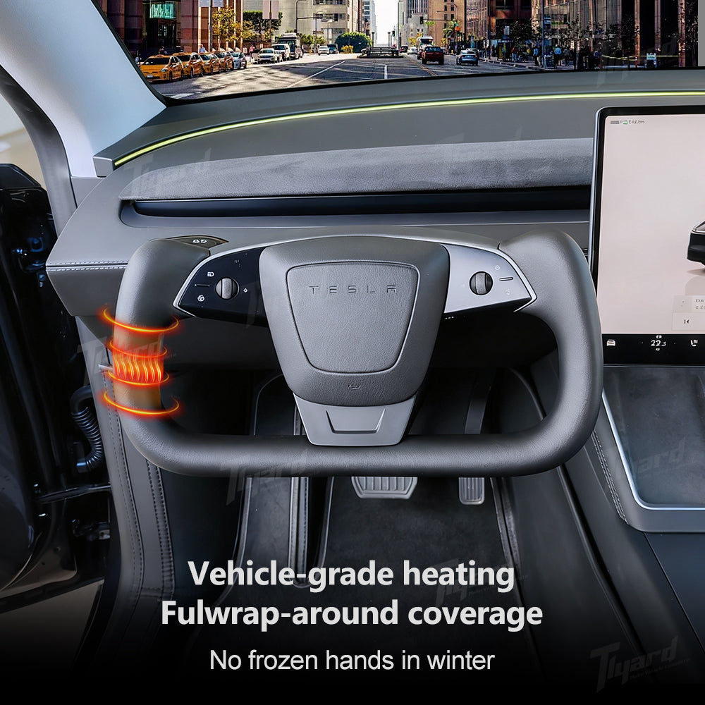 - Revolutionary Yoke Design: Break free from tradition with the advanced aircraft-style yoke. Its unique shape provides an unobstructed view of your instrument cluster and touchscreen, creating a more open and modern cockpit environment that complements your Tesla's innovative interior.