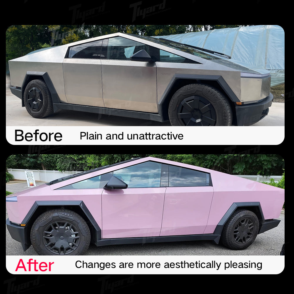 The Tlyard Tesla Cybertruck Color Paint Films offer a transformative solution for enhancing your vehicle's aesthetics while providing robust protection. Available in matte, glossy, and laser paint-like finishes, these pre-cut full coverage 7.5mil Paint Protection Films (PPF) are designed specifically for the Tesla Cybertruck, ensuring a perfect fit and seamless application. They not only elevate the visual appeal but also shield your vehicle from scratches, UV rays, and contaminants.