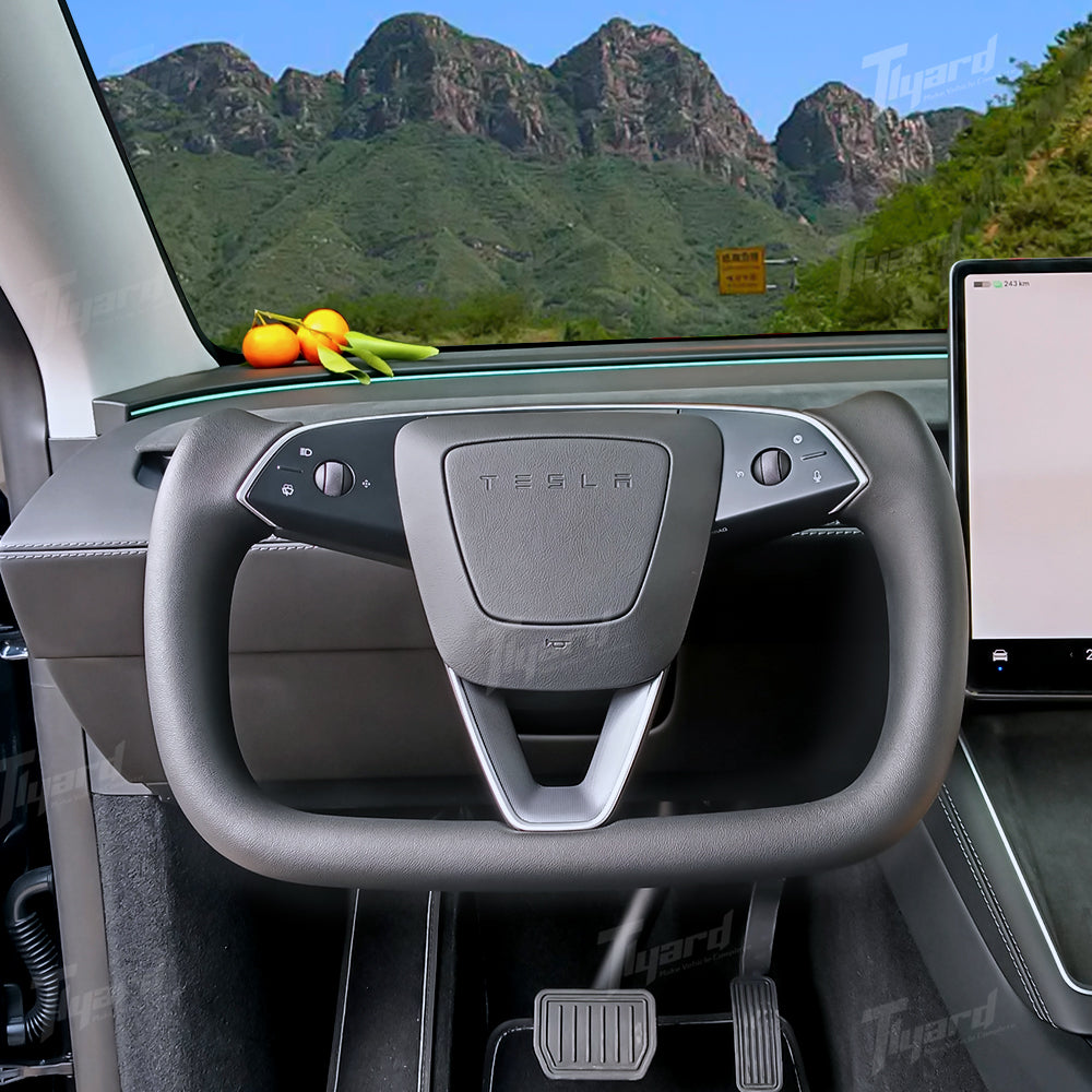 Elevate your driving experience with the 2025+ Tesla Model Y Juniper Yoke Steering Wheel from Tlyard. This premium upgrade features a sleek, sporty design and combines luxurious materials like Nappa leather or Alcantara for maximum comfort and style. The unique yoke shape not only enhances steering precision but also adds a modern touch to your Tesla's interior. Enjoy the added benefit of heating functionality to keep your hands warm during colder drives.