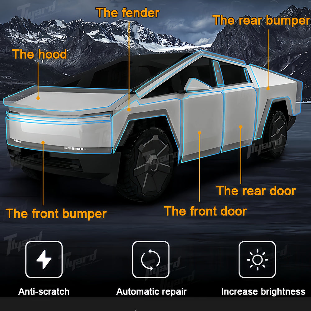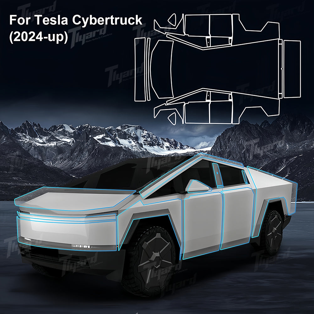 Tesla Cybertruck Paint Protective Film Pre-Cut Full Coverage PPF Scratch Protector Exterior | Tlyard Tesla CyberShield