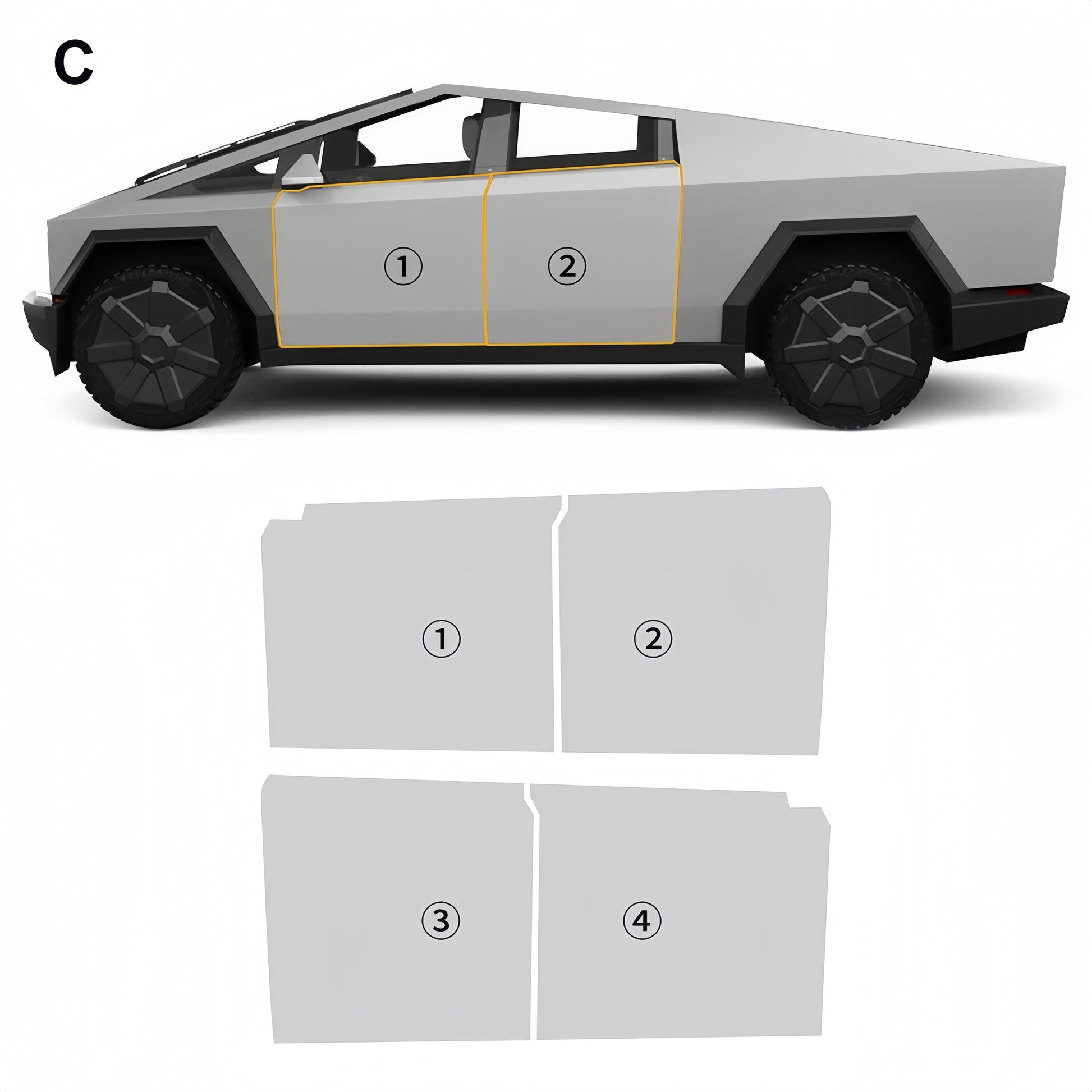 - Pre-Cut Precision: Designed with pre-cut templates tailored specifically for the Cybertruck, providing a perfect fit and easy installation without the need for trimming.