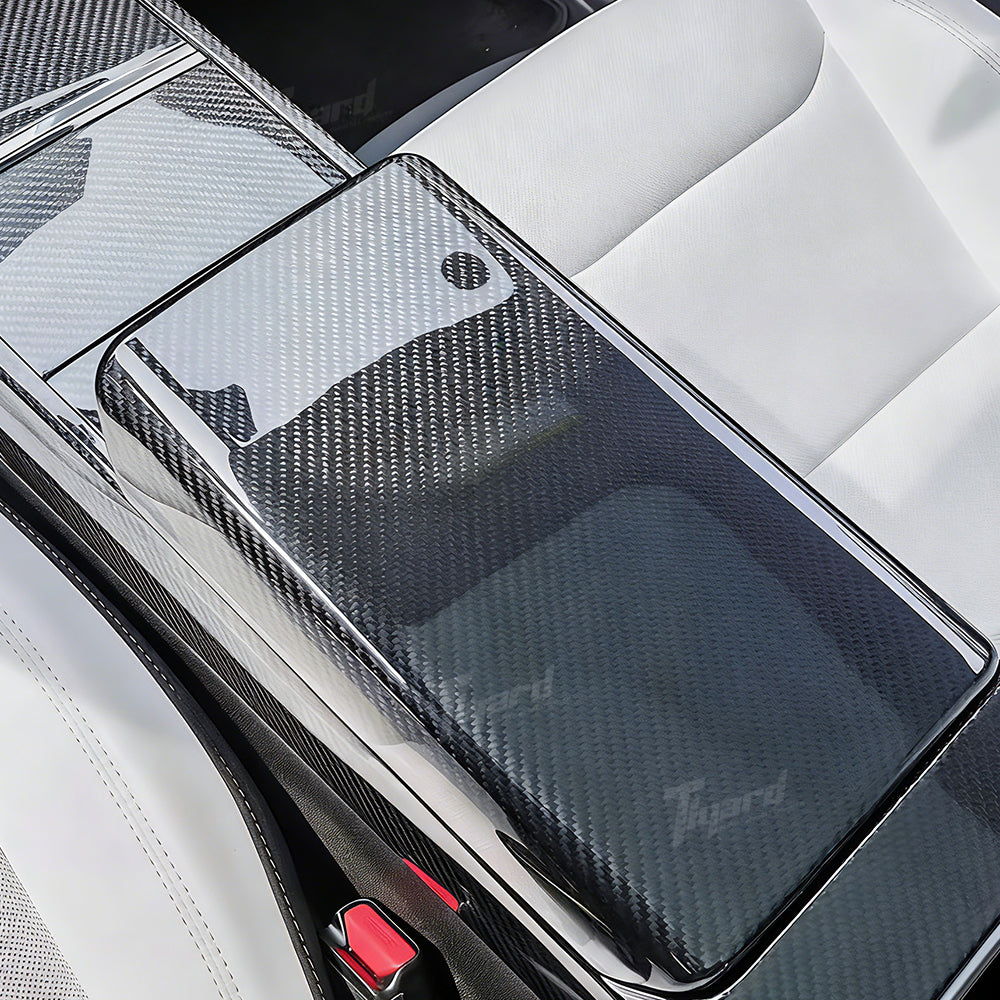 Model Y Juniper & Model 3 Highland Real Carbon Fiber Center Console Armrest Cover Interior Modification Trim | Tlyard