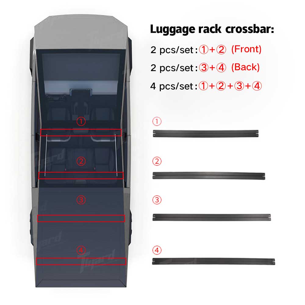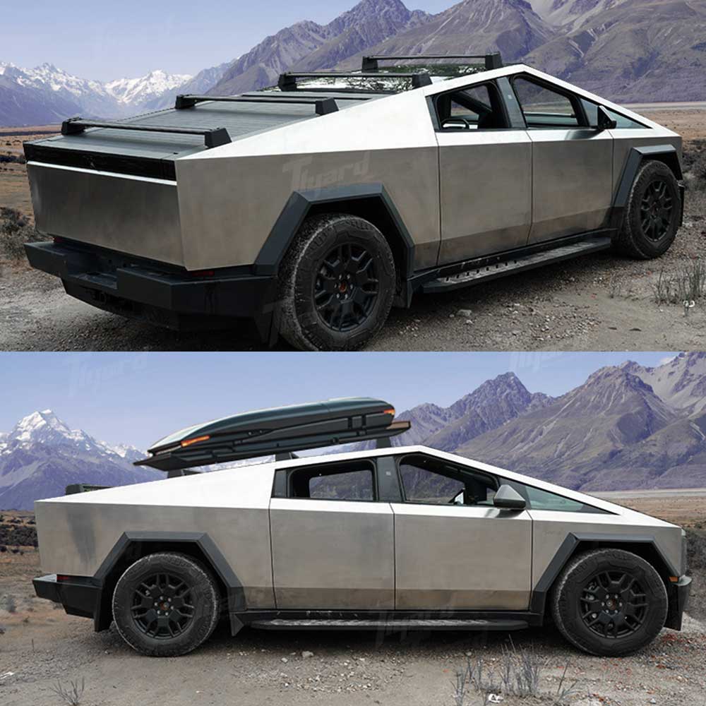 Designed with sleek aerodynamic profiles, Tlyard cybertruck black top carrier bars not only complement your vehicle's futuristic design but also deliver functional performance. Perfect for carrying cargo, recreational gear, or even rooftop accessories, these crossbars are engineered for durability and ease of installation. Whether you're embarking on a weekend adventure or just need extra space for your everyday needs, the Tlyard Roof Rack Crossbars make it easier to transport your gear securely and stylishly.