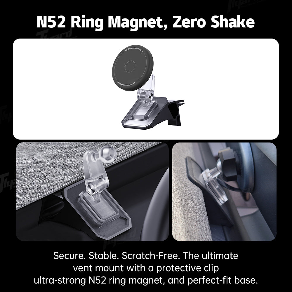 Ventilation Friendly: The Tlyard’s sleek design ensures the vehicle’s air conditioning vents remain unobstructed, promoting optimal airflow.