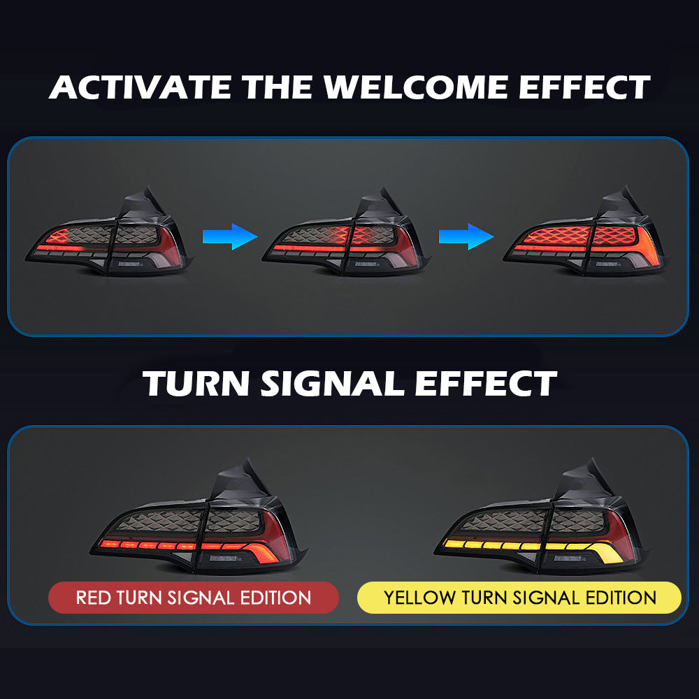 我們的尾燈採用動態順序轉向燈,比之字形尾燈更引人注目。  當你啟動汽車時,行車燈會有一個持續2-4秒的動態動畫,非常動感炫酷。